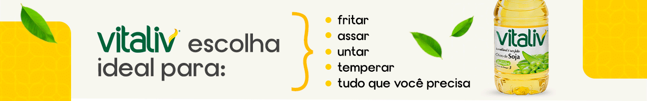Versátil para o dia a dia, o óleo de soja Vitaliv é fonte de vitaminas (A,D,E e K) e ômegas 3 e 6, que atuam como aliados da saúde do coração. Sua composição ajuda na redução do colesterol “ruim” e tem efeito antioxidante e anti-inflamatório. Além disso, é estável em altas temperaturas, sendo ideal para refogados, frituras e muito mais.