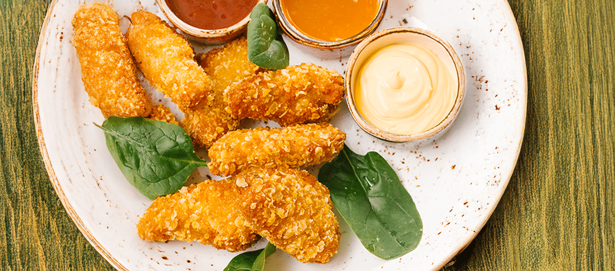 Frite os nuggets em óleo Vitaliv quente até ficarem dourados e crocantes.